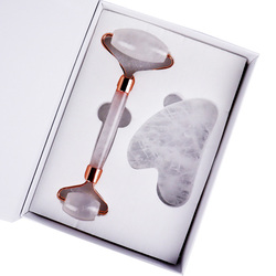 ローズクォーツフェイスローラーとグアシャマッサージャーキットクリスタルストーングアシャフェイシャルビューティーツールカスタムロゴジェイドローラーとグアシャセット