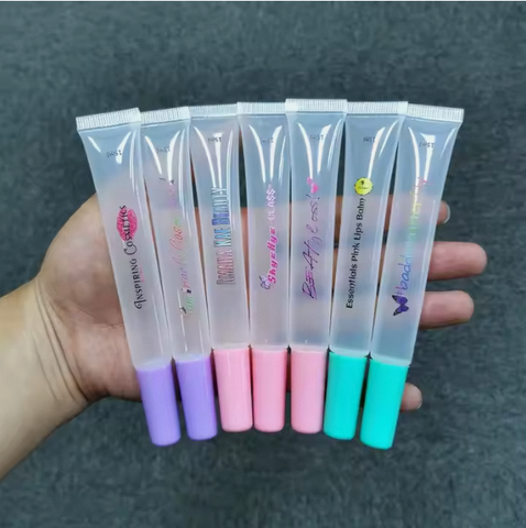 卸売15mlスリムロングスキニー空のクリアリップグロススクイーズチューブリップクリームスクイーズチューブカスタムプライベートロゴ付き